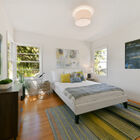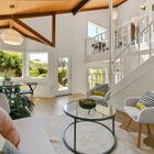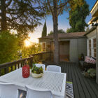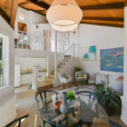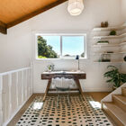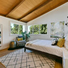 Resting behind the bungalow is a second contemporary 1BD/1BA home. Sleek and sophisticated, this loft-style home is filled with light and features vaulted wood ceilings with exposed beams, a wide-open floor plan, and partial bay and city views.