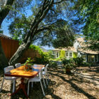 Glorious Eastmont compound: Sheltering beneath a giant live oak tree, 7982 Hillmont Drive is an ultra-charming 2BD/1BA 1070 sq ft traditional bungalow with a magnificent 1BD/1BA 793 sq ft second home on one enchanted lot that is also home to nine redwood trees. Both homes feature spacious rooms, large sunny windows, and modern kitchens and baths. The homes share a rambling, woodsy backyard perfect for entertaining with multiple seating areas, mature landscaping, and a new Tiny House (ideal for home office, crafts, or yoga studio) with its own permaculture garden.
