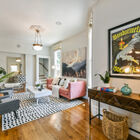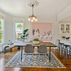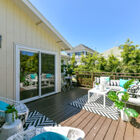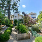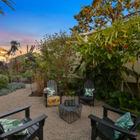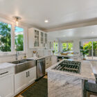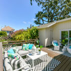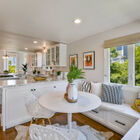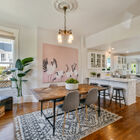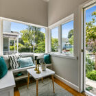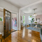 Take your morning coffee out onto the enclosed sun porch and enjoy the beauty of the front garden lushly planted with exotic bougainvillea and bird of paradise, Chilean guava, flowering succulents, a variety of perennials, and palm plants. Inside, the living and dining rooms are open to create an expansive great room with high ceilings, gleaming white oak floors, and 7-foot windows that bathe the rooms in natural light.