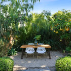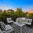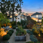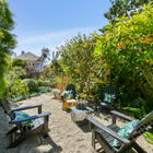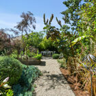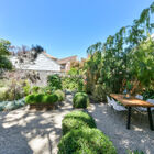 Beyond the expansive railed deck (perfect for barbecues or al fresco dining), wide steps lead to an enchanting oasis. Professionally designed and landscaped, the yard is planted with lush fern pines on one side for privacy and enjoys multiple seating areas surrounded by angel’s trumpet, princess flower, star jasmine, and weeping bamboo. A central raised vegetable bed is planted with tomatoes, green beans, and herbs, and an abundant harvest of fruit is provided by raspberry, blueberry, and guava bushes, as well as loquat, white peach, and pomegranate and banana trees.