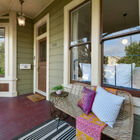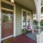 Wide stairs lead up to a porch that runs the width of the house. Put your feet up, grab a glass of lemonade, and you have a perfect Sunday afternoon in this friendly Alameda neighborhood. From the porch, a beautiful front door with stained glass accents opens onto a gracious entryway with high coved ceilings, wood floors, and decorative light fixture.