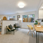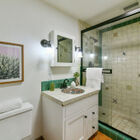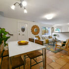 The downstairs 2BD/1BA could be an in-law suite or guest quarters. Spanish tile floors with decorative accents warm the living and dining areas. The Spanish motif carries over to the delightful full bath with attractive accent tiles in the step-in shower and a lovely embellished ceramic sink. A full kitchen boasts tile floor, gas range, breakfast bar, a large pantry, and a door leading to the backyard. A bonus office space rounds out this charming living space. This truly private space has outdoor access to the side yard, to the back yard, and to the 1-car garage.