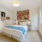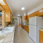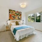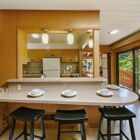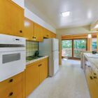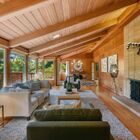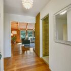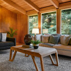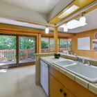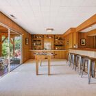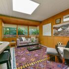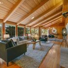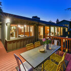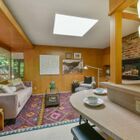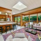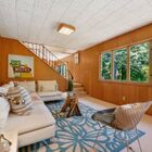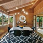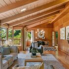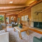 A classic example of the mid-century modern aesthetic, 94 Dudley Avenue is a welcoming and peaceful home that has been lovingly maintained by its original owners. As you approach this 2838 square foot 5BD/3BA, you take in the stunning, drought-tolerant landscaping, planted with an assortment of mature succulents, cacti, and South African protea. Inside, you will find a space that is the hallmark of the architectural era: a wide-open living/dining area with soaring ceilings and original paneling that echoes the towering redwoods you take in through a wall of windows. The room also features a brick fireplace and wide-planked hardwood floors.