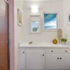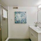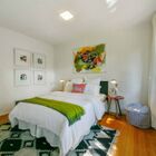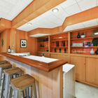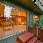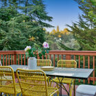 Descending the staircase from the main hallway, 94 Dudley reveals further charms: an expansive lower level that could be used as a guest suite or au pair. With a remarkably large common area, its features include original wood paneling, built-in shelves, a kitchenette with built-in cabinetry and breakfast bar, two additional bedrooms, and a shared bath with a shower. From the lower level and by a steps descending from the upper deck, you can explore an additional deck, large terrace, and rear garden, all of which lend the home an atmosphere of tranquility and seclusion.