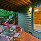 - Lower level guest suite with large common area, built-in cabinetry, kitchenette, two bedrooms, shared bath, and access to lower deck